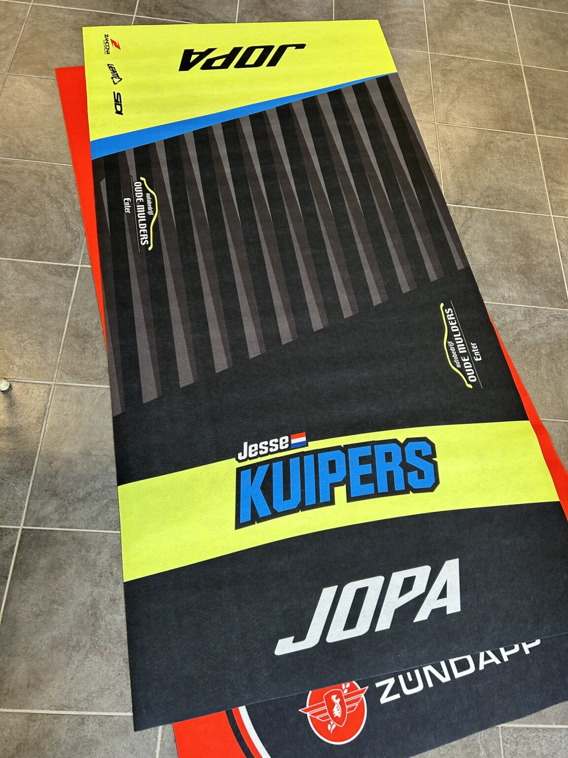 Är din design klar? Då kan du beställa din depåmatta direkt via vår webbplats. Skapa ett konto, spara din design och slutför din beställning säkert med iDEAL, PayPal, Visa eller Mastercard. Vi säkerställer snabb orderhantering och skickar din personliga depåmatta noggrant via DPD. Oavsett om du behöver en enskild matta eller en större mängd till ditt lag eller din klubb, är det snabbt och pålitligt att beställa depåmattor från JopaMX. Få din personliga depåmatta av högsta kvalitet.