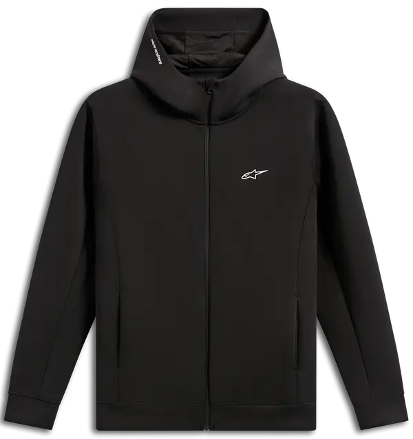 Astars-logotyp fram, huva och Alpinestars Word-logotyper bak.
