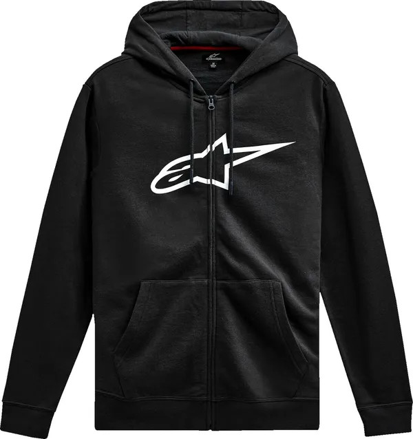 80 % bomull / 20 % polyesterDold dragkedja, mudd i ärmslut och fåll, metallöljetter och doppade dragsko i spetsarnaAlpinestars-logotyptryck på bröstet framtillInvändig huvudetikett och extern etikettmärkning