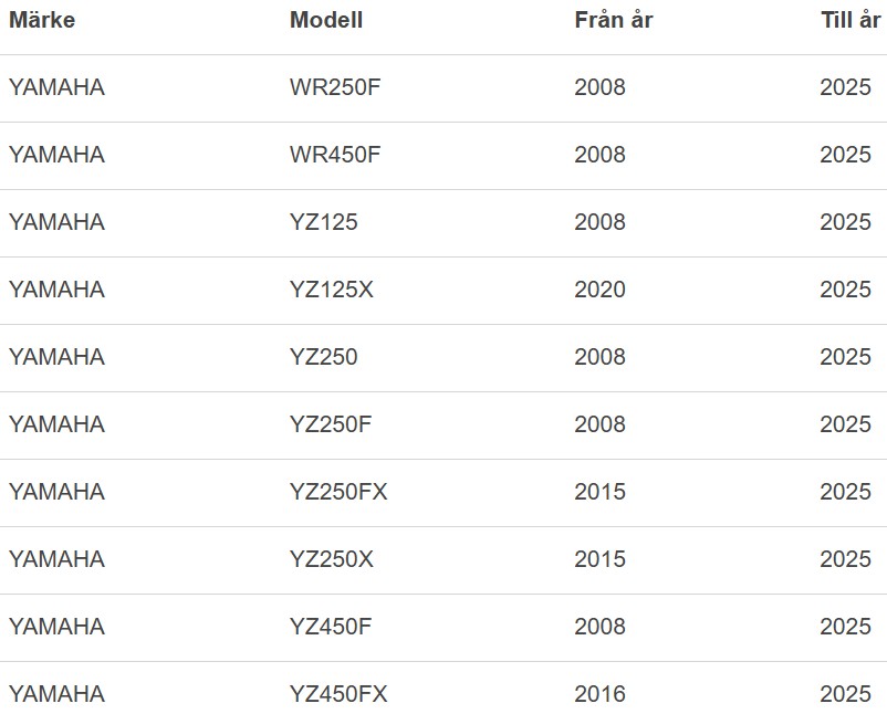 • Spakmonteringssystemet är modellspecifikt